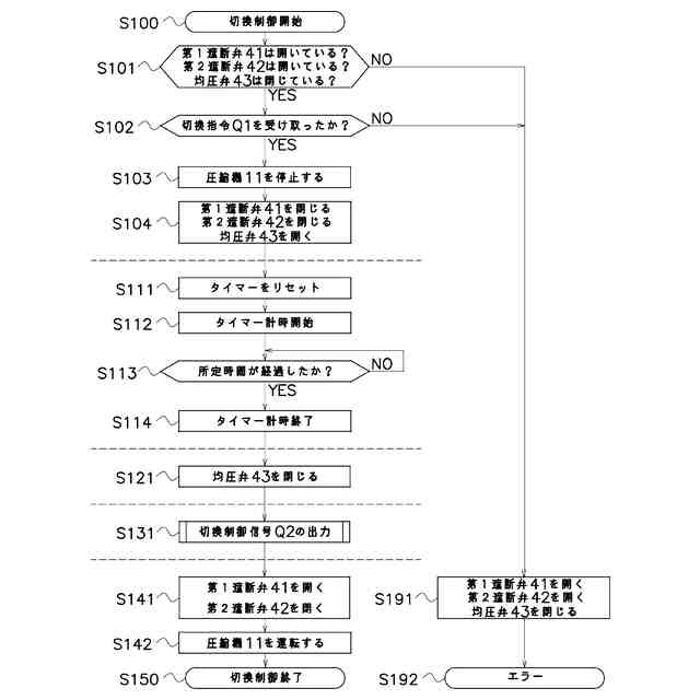 前記制御部は、前記切換を行う前に、前記均圧弁をさらに開く、