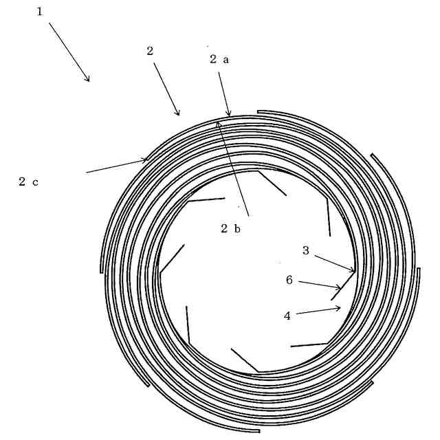 【解決手段】本発明に係るハンディ傘乾燥丸め器1は、一方向に湾曲した可撓性を有する矩形状シートからなるガイドシート2aとガイドシート2aよりも幅狭の挟持シート2bと、からなり、湾曲方向を揃えて複数のガイドシート2aと複数の挟持シート2bを放射状に交互に立設し、外方で隣接するガイドシート2aと挟持シート2bとをガイドシート2aの表面が外側となるように各々の外端部を連接して一対とする外連接部2cを形成した生地挿通体のガイドシート2aと挟持シート2bの内端部を、内方で隣接する他の生地挿通体2のガイドシート2aと挟持シート2bの内端部と各々連接した内連接部3を形成し、隣接する内連接部3の間を生地案内部4としたことを特徴とする。