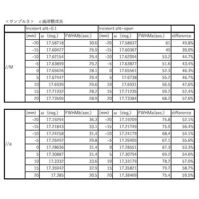 は、それぞれ、X線ロッキングカーブ測定により測定した{10-12}面回折の半値幅であり、