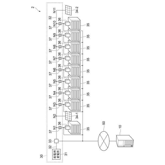 配電系統30は、配電用変電所31と、配電線32と、センサ33と、配電系統30の電圧を電力消費施設35に供給される電圧に変換する変圧器37とを備える。