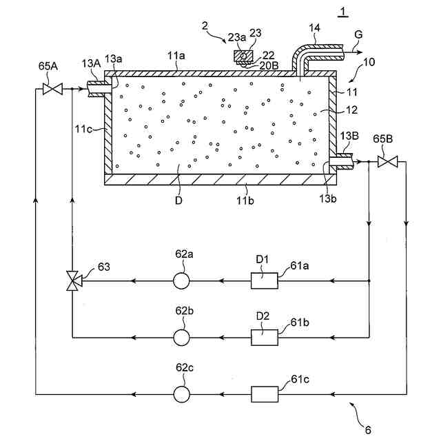 前記ガス生成システムは、前記収容空間に収容された前記分散液を循環させる循環系をさらに備え、
