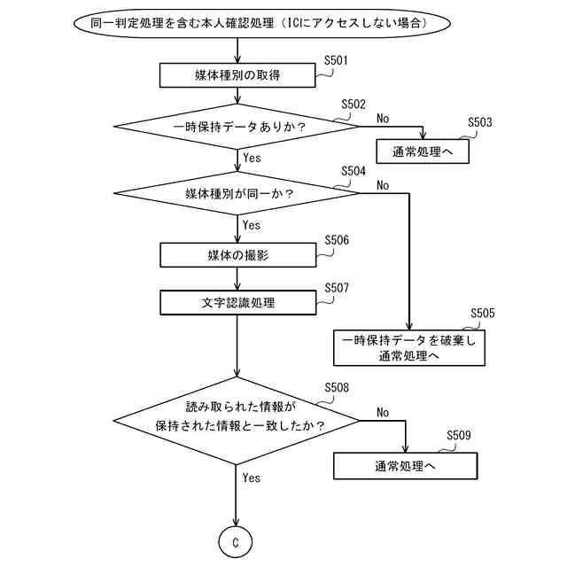 前記判定手段は、前記第1の手続きに関する所定のタイミングとの関係で所定の時間条件が満たされた場合及び/又は前記第1の媒体の媒体種別と前記第2の媒体の媒体種別とが同一である場合に、前記同一判定を行う、