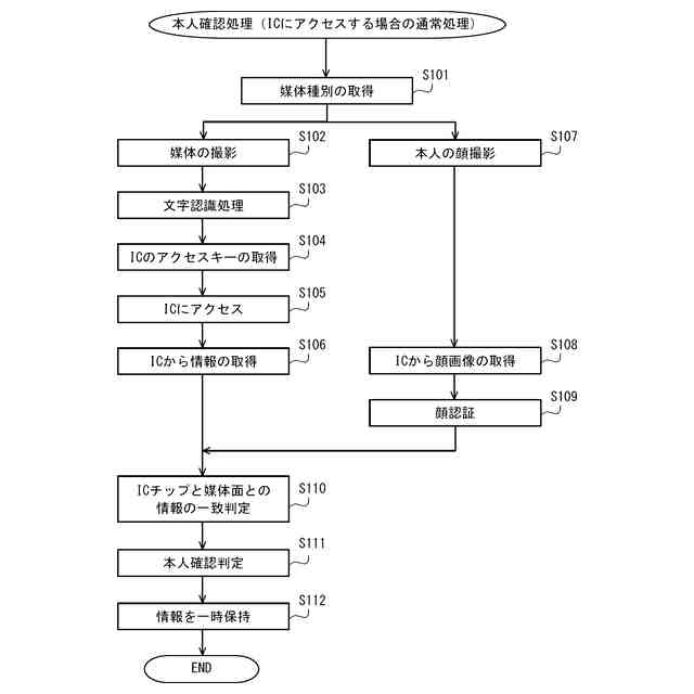 実施形態に係る本人確認処理(ICチップにアクセスする場合の通常処理)の流れの概要を示すフローチャートである。