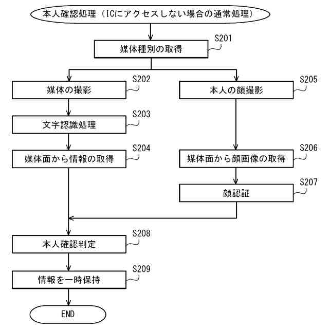 実施形態に係る本人確認処理(ICチップにアクセスしない場合の通常処理)の流れの概要を示すフローチャートである。