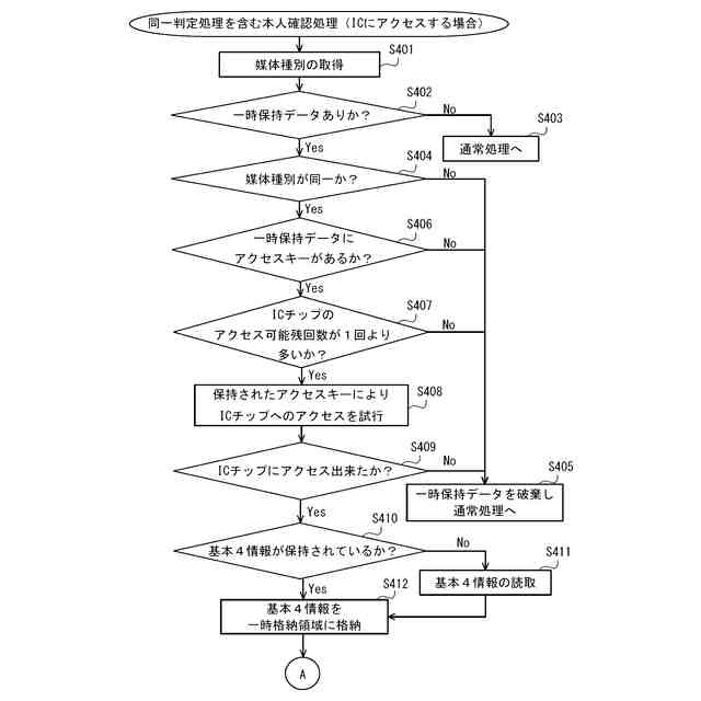 実施形態に係る同一判定処理を行う場合の本人確認処理(ICチップにアクセスする場合)の流れの概要を示すフローチャート(2)である。
