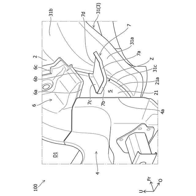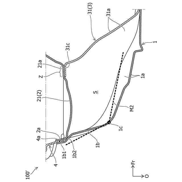 ところで、サイドボディアウタパネルの後部が車幅方向内側に屈曲している場合がある。つまり、サイドボディアウタパネルが、車両前後方向に延びるアウタパネル側壁部と、アウタパネル側壁部の後端から車幅方向内側に延びるアウタパネル後壁部と、を有する場合がある。この場合には、サイドボディアウタパネルの後部の屈曲した部分(以下、後側角部という)は、後側角部の両側に連続する概ね平坦な部分(つまり、アウタパネル側壁部及びアウタパネル後壁部)の剛性より高い剛性を有し、後側角部の両側の部分(アウタパネル側壁部及びアウタパネル後壁部)は後側角部の剛性より低い剛性を有することになる。