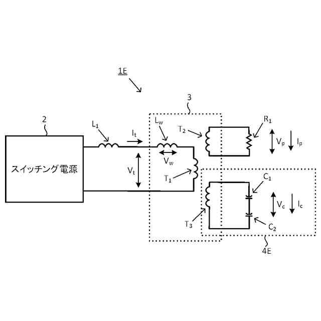 の間に直列に結合することによって形成される。スイッチング電源20は直列共振回路40の共振周波数近傍の周波数の励起電圧V