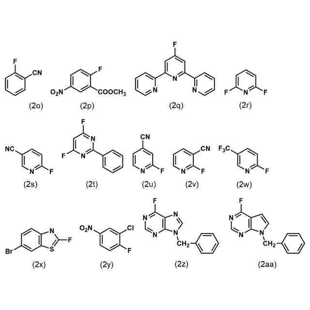 非特許文献3には、無水フッ化テトラメチルアンモニウムをフッ素化剤として、室温下、ジメチルホルムアミド中で、芳香族求核置換フッ素化反応を行うことが記載されている。