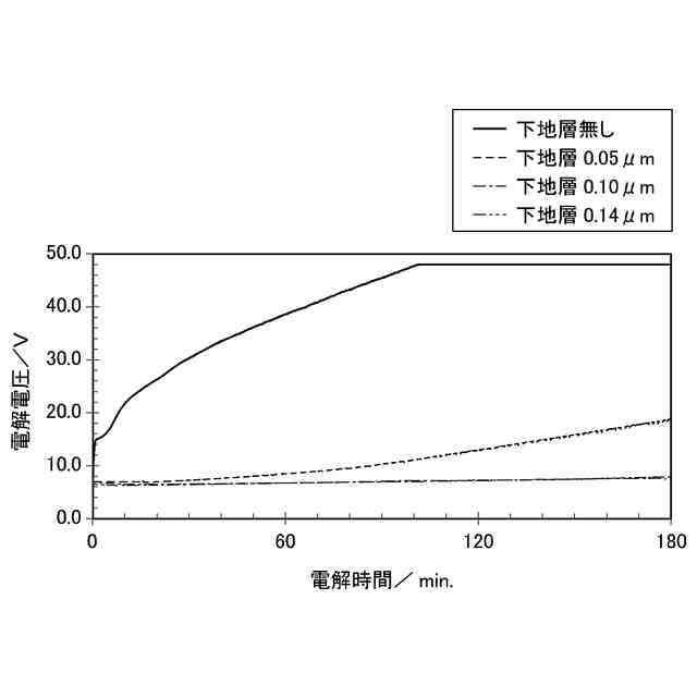 下地層の膜厚と、電解処理中の電解電圧の推移との関係を示す図である。