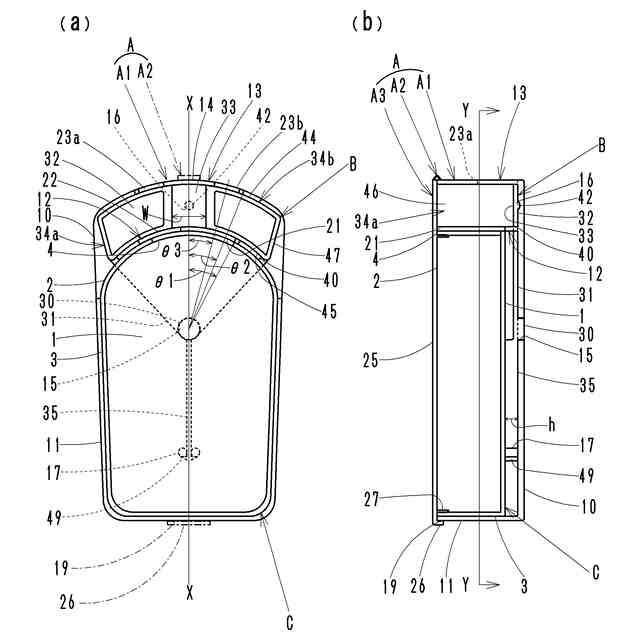 【解決手段】 上部に連通口4が開口する収容部Cと、連通口4から流入する内容物Pを計量し、排出する計量部33が形成された計量スライドBと、計量部33の排出側を閉鎖する閉鎖部14が形成され、計量スライドBを収容部Cの上部に沿って移動可能に格納するケースAとからなる排出容器であって、計量スライドBは、排出側を閉鎖部14に対向させる中立位置に付勢する付勢部35と、計量部33を中立位置から移動可能な操作部34a、34bとを備え、計量スライドBは、容器を倒立させ、収容部Cから計量部33に内容物Pが流入後、操作部34aを付勢部35に抗して一方向に操作すると、計量部33を連通口4と連通して連続排出し、また、操作部34bを逆方向に操作すると、計量部33を連通口4から遮断して定量排出することを特徴とする。