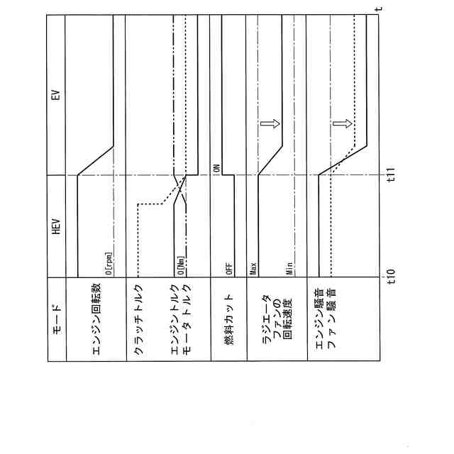 図5は、本発明の一実施例に係るクラッチ冷却装置のHEV走行からEV走行時に切り替わった際の動作の一例を示すタイムチャートである。