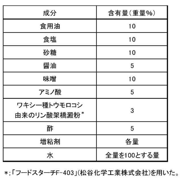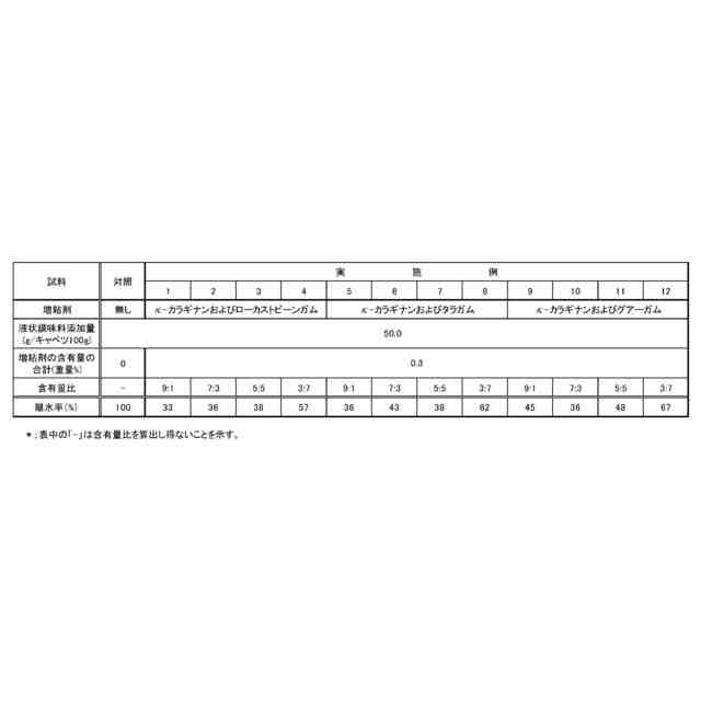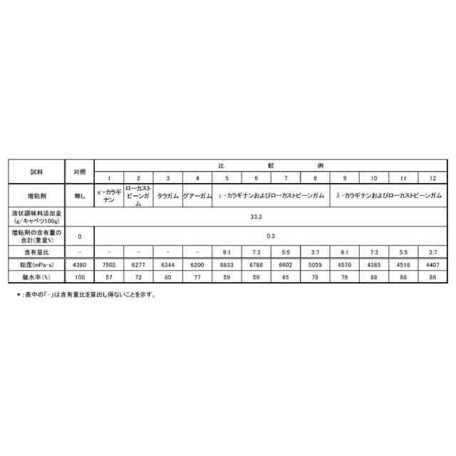 そこで、本発明は、加熱調理において生じる具材からの離水を抑制する効果に優れ、かつ前記離水抑制効果の持続性にも優れるとともに、調理品に好ましくない曵糸性や、べたつき、くちどけの悪さ等の官能上好ましくない影響を与えることの少ない調味料を提供すること、また、加熱調理において、具材からの離水を良好にかつ持続的に抑制する方法を提供することを目的とする。
