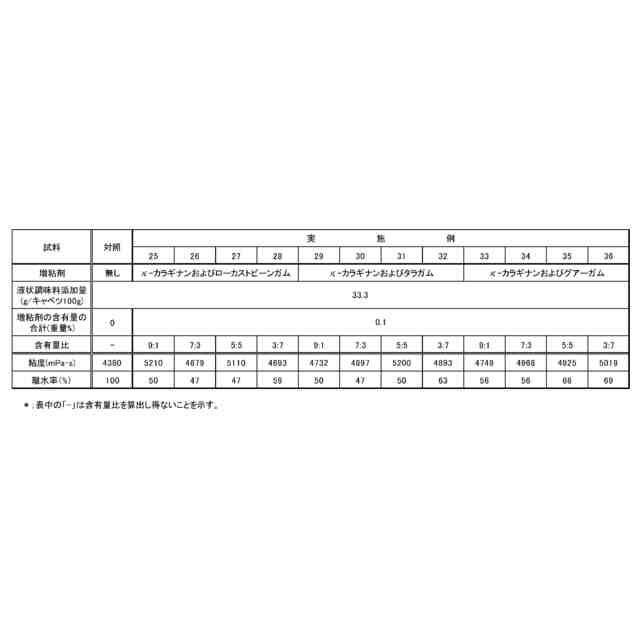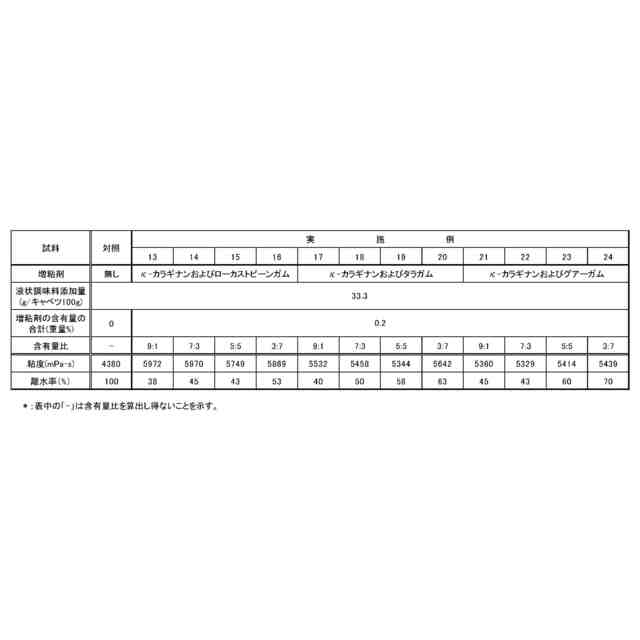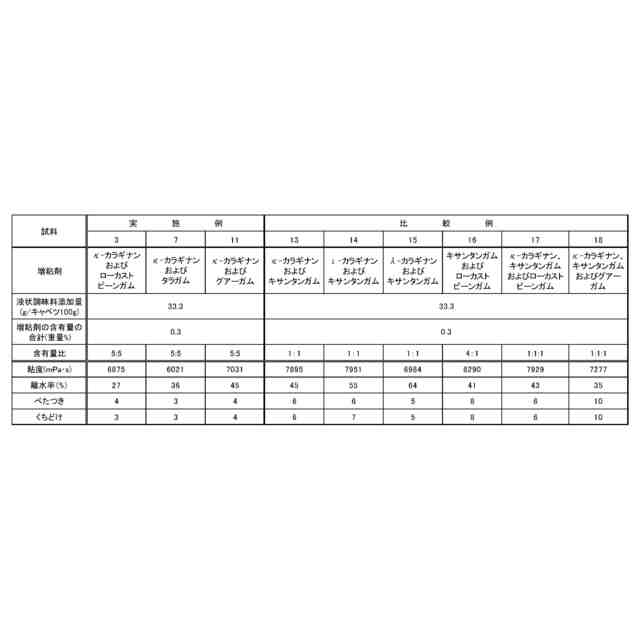 しかしながら、使用する増粘多糖類の種類や量により、離水抑制効果が十分ではない、離水抑制効果の持続性が十分ではない、調理品に好ましくない曵糸性が見られる、好ましくないべたつきが見られる、くちどけが悪くなるといった課題が見出され、調理品を長時間保存した場合においても離水を良好に抑制することができ、調理品に官能上好ましくない影響を与えることの少ない点において、十分に満足できる調味料は得られていない。