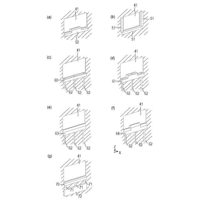 第1の実施形態に係る付着物低減手段の各種変形例(a)~(g)を示す模式図である。