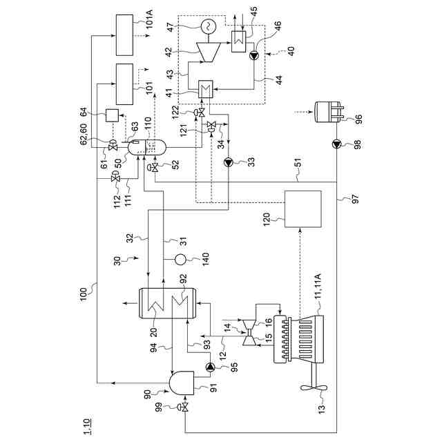 排熱回収システムには、内燃機関(例えば、舶用主機エンジン)から排出される排ガスの熱エネルギをエコノマイザなどにより回収し、この回収した排ガスの熱エネルギにより発生させた蒸気により、発電機の蒸気タービンを駆動し、電力を回収する発電システムが知られている。近年、内燃機関(舶用主機エンジン)の燃費改善に伴い、内燃機関から排出される排ガスの温度が低下している。内燃機関から排出される排ガスの温度が低いと、蒸気タービンを駆動して電力需要を賄うことができるだけの蒸気量を確保することが難しく、上記発電システムを安定的に運転させることが困難になる虞がある。