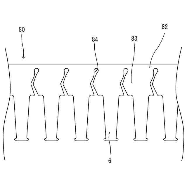 軸線を中心として螺旋状に延び、前記積層体の外周側に位置する螺旋状の前記バックヨーク部の外周部に対して、積層方向に重なるバックヨーク接着部と、