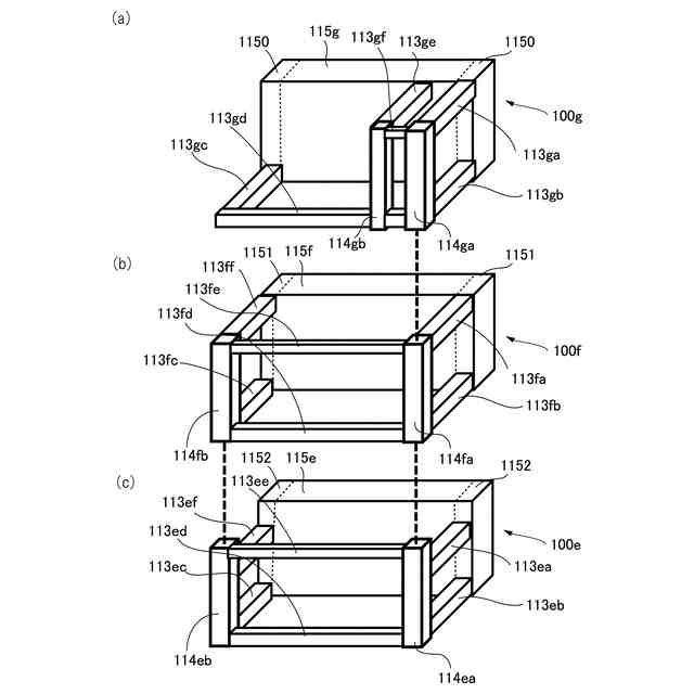 (a)排出枠体を示す模式図、(b)作像枠体を示す模式図、(c)供給枠体を示す模式図。