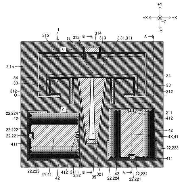 ところで、上記のような衝撃センサをSOI(Silicon On Insulator)基板等の積層体を用いたMEMS(Micro Electro Mechanical System)構造により小面積化することが提案されている。例えばSOI基板は、支持層(シリコン基板、絶縁層)、活性層の順に積層された積層体であるが、MEMS構造を構成する可動子は、当該積層体のうち支持層を除去して得られる活性層により形成される。しかし、衝撃センサを小面積化すると、可動子の質量(慣性力)を確保することが困難となり、可動子と、可動子を支持する固定子と、の慣性力による相対変位が困難となり、小面積化には限界があった。