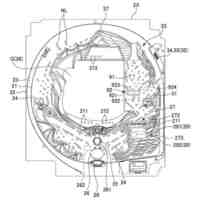 (a)は、第2制御例における遊技球が特別排出流路に振り分けられるように切替部材が作動された状態を示す裏カバー体の背面図であり、(b)は、第2制御例における流路ソレノイドが非作動であり、特別排出流路の入り口の開口面を切替部材の誘導片が塞いでいる状態を示す裏カバー体の背面図である。