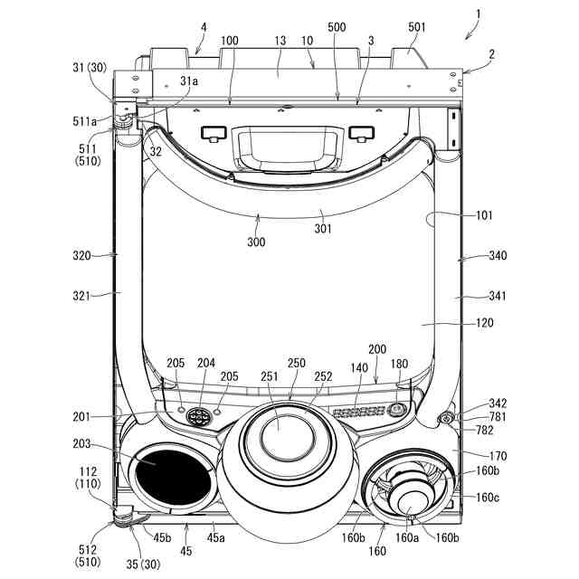 本体枠を主な構成毎に分解して後ろから見た分解斜視図である。