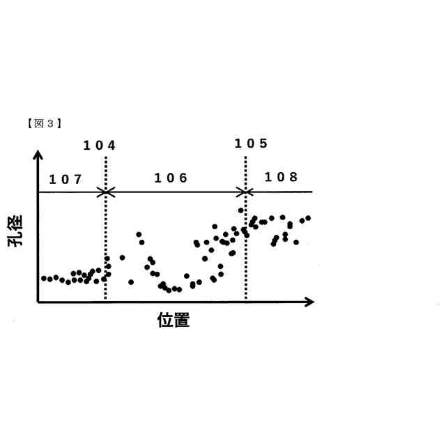 前記領域Aの断面孔径Apと前記領域Bの断面孔径Bpとが、Ap>Bpの関係を満たし、かつ、