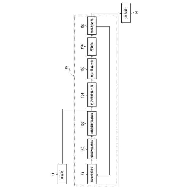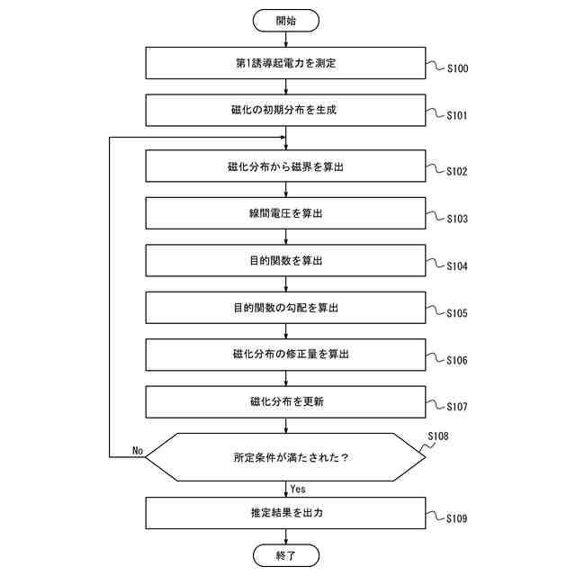 前記制御部は、前記磁化推定アルゴリズムにおいて、前記測定部により測定された前記第1誘導起電力とシミュレーションにより生成された磁化分布に基づく第2誘導起電力との間の差分を含む目的関数に基づく最適化問題を解くことで前記磁化の状態を推定する、