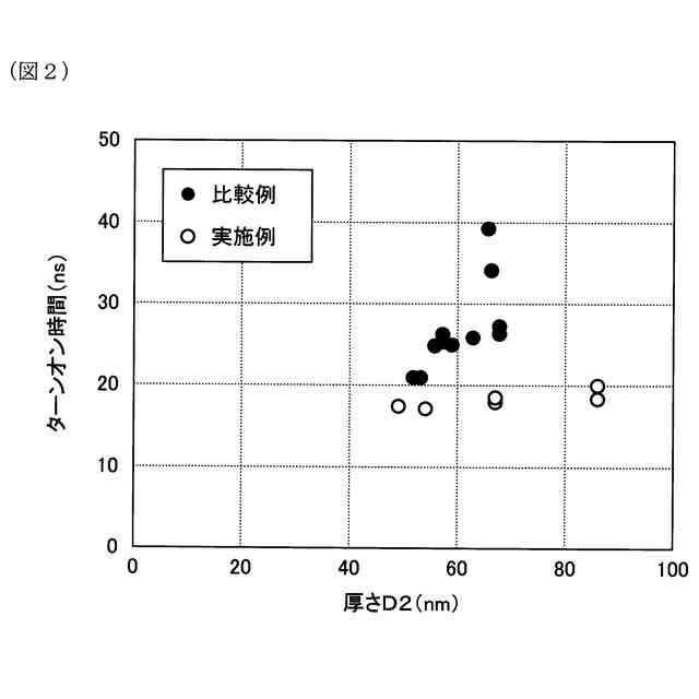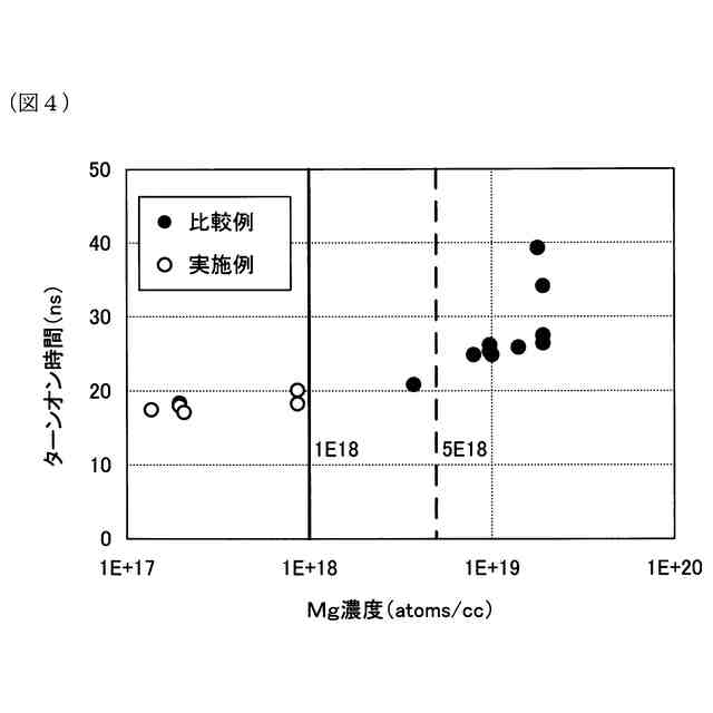 Mg濃度とターンオン時間の関係を示したグラフ。