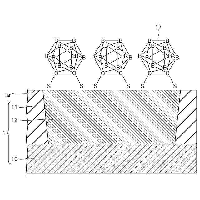の2つのH原子を2つのチオール基(-SH)に置換した有機ホウ素化合物の一例を示す図である。