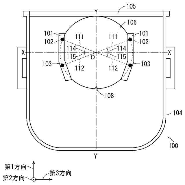 前記第2方向から視て、前記仕切部に収容された前記半導体基板の中心から、前記複数の支点のうち前記開口部に最も近い支点に向かう方向と、前記第1方向及び前記第2方向と直交する第3方向とがなす角度は、13°以上46°以下であり、