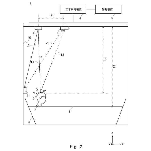 上述した特許文献1に開示された沈水判定システムでは、天井に設けられた各超音波装置を用いて入浴者の頭部位置を測定している。特許文献1に開示された沈水判定システムでは、各超音波装置から頭部までの距離と、各超音波装置から壁面に取り付けられた物体や浴槽周囲の物体までの距離と、が近い値を示す場合に、超音波装置で受信された反射波から入浴者の頭部での反射波を抽出することができない場合がある。そのため、頭部位置を精確に検出することができない問題があった。