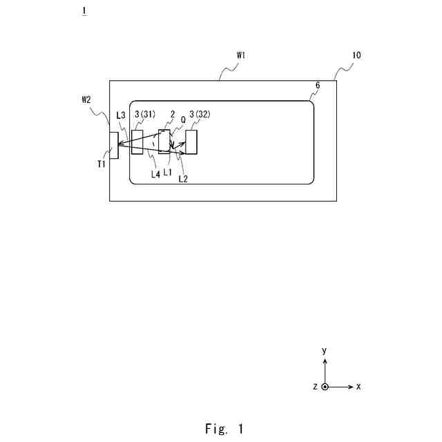 前記超音波受信装置は、前記超音波送信装置を頂部として、くの字形状を成すように配置される。