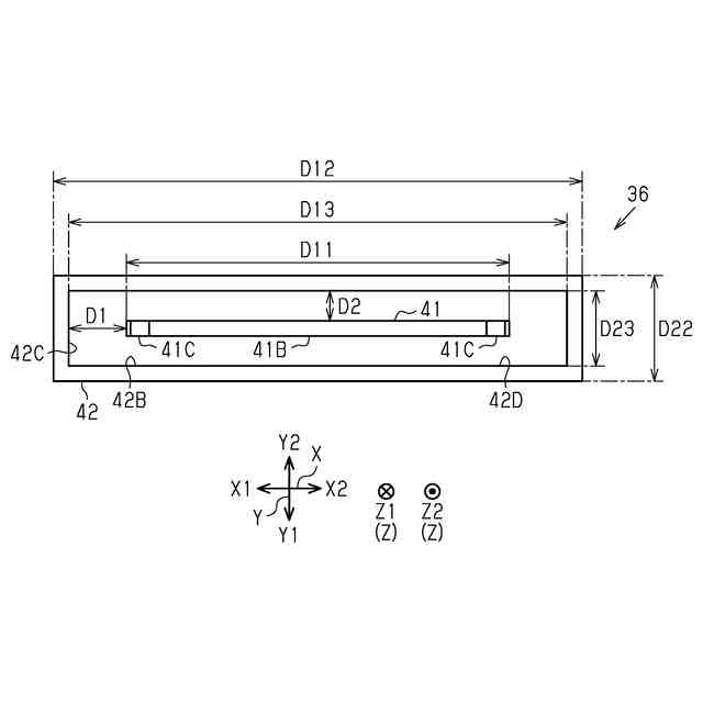 前記開口部は、前記第2方向が長辺となり、かつ、前記第1方向及び前記第2方向と交差する第3方向が短辺となり、