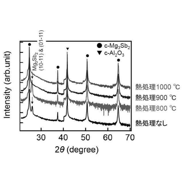 薄膜を成長させることができた。しかしながら、X線回折結果で、この薄膜には2種類の配向が混在しており、その移動度(電気伝導度)も充分ではなかった。このため、より配向性を高めることによって、より大きな移動度の大きなMg