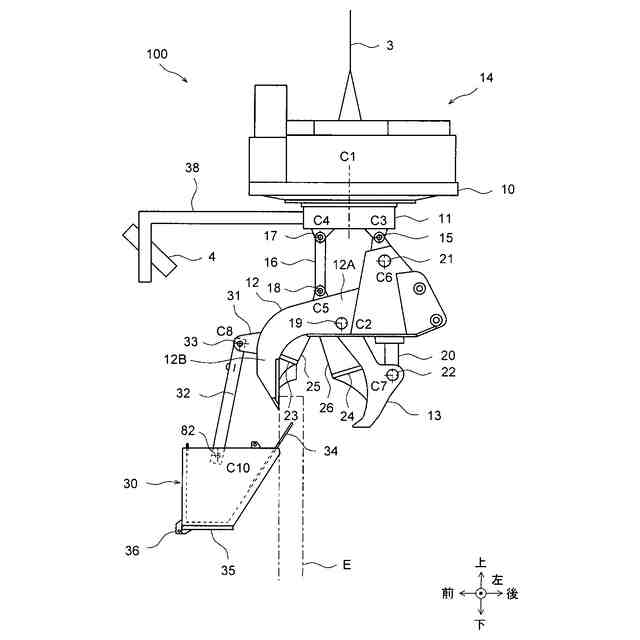 【解決手段】構造物Eを破砕するための破砕装置100は、固定破砕腕12と、固定破砕腕に回動可能に接続された可動破砕腕13と、固定破砕腕から吊り下げられ、構造物の外側に落下する破砕片を受け入れるバケット30と、バケットを吊り下げるべく固定破砕腕とバケットを連結する吊り部材32とを備える。吊り部材の下端部は、バケットに回動可能に接続されている。