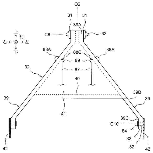 前記吊り部材の下端部は、前記バケットに回動可能に接続されている