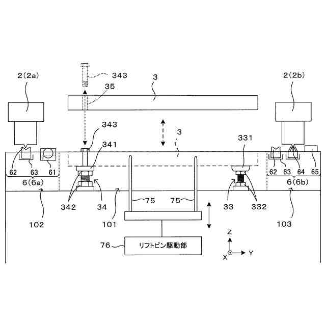 上記したように、従来装置では、基板を載置して保持するための保持部に対し、一対のガイドレールやメンテナンス部が設けられている。このため、基板サイズの変更やメンテナンス処理の仕様変更などが生じると、一対のガイドレールやメンテナンス部を含めて保持部ごと入れ替える必要があった。その結果、汎用性において改善の余地があった。