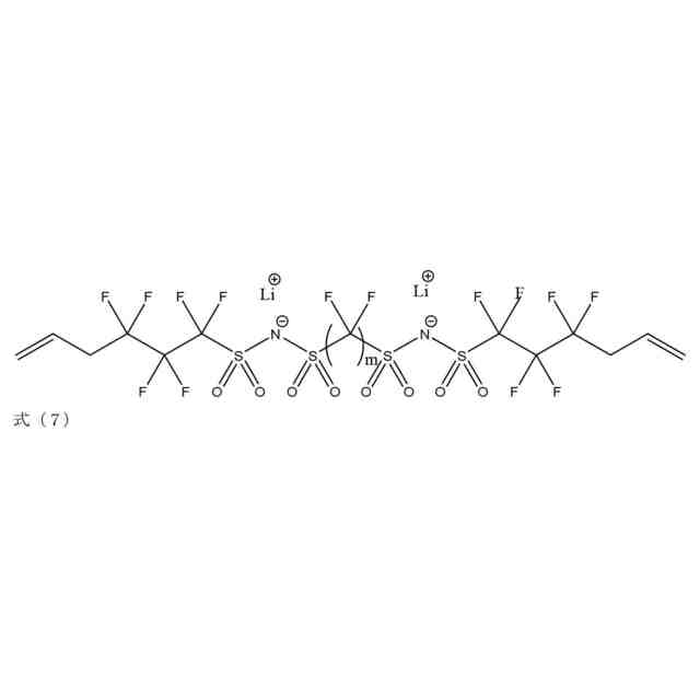 スルホンイミド化合物は、良好なイオン電導性、熱安定性、化学的安定性を有することから、リチウム二次電池の電解質として有用な物質であり、これまでにもSLICsとしてスルホンイミド重合体が検討されてきた。これまでにスルホンイミド化合物及びその重合体が合成されてきているものの、その合成が難しく、限られた構造の化合物や重合体しか得られていなかった。非特許文献1は、2つのフルオロアルキルスルホンが置換したイミド塩化合物として、以下に示すLiPBSI(リチウム ポリペルフルオロブチレン-1,4-ビス-スルホニルイミド)とさらに炭素鎖が2炭素原子分長いLiPHSI(リチウム ポリペルフルオロへキシレン-1,4-ビス-スルホニルイミド)とを記載しているが、2つのフルオロアルキルスルホンが置換したイミド塩としては非常に単純なものに限定されている。