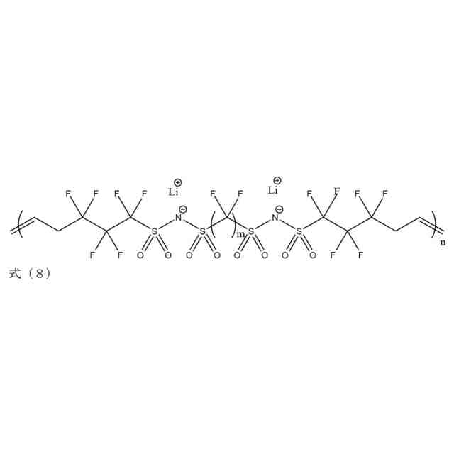 [8]下記式(8)で表されるフルオロアルキルスルホンイミドアニオン部位を有する重合体。