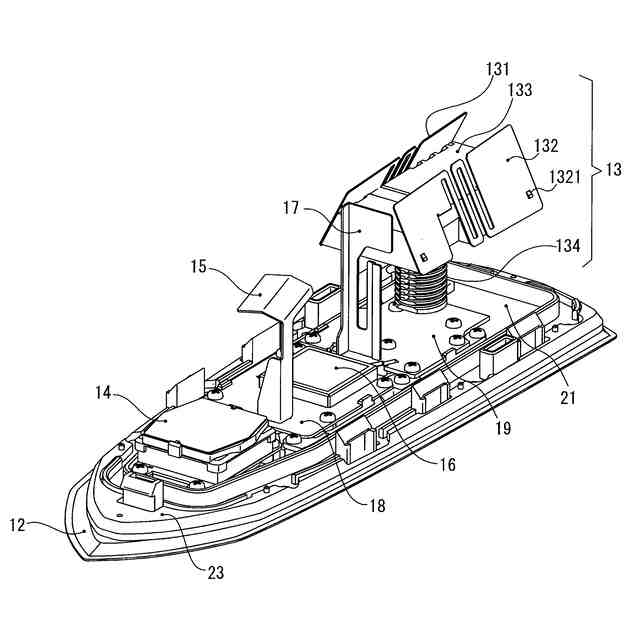 収納空間のアンテナ部を含むアンテナ装置の構造例を示す透視図。