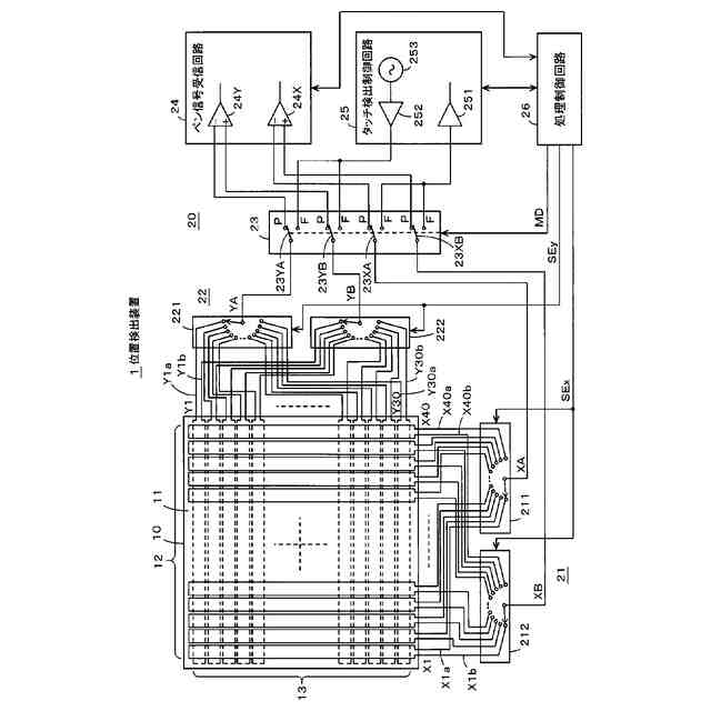 しかしながら、特許文献1で提案されている位置検出装置の位置検出センサは、基板の表面と裏面とに、互いに直交する方向に延長する複数の線状の導体(X軸線体及びY軸線体)を設け、X軸線体及びY軸線体の一端側と他端側のそれぞれにスイッチ回路を設けて、電磁誘導結合用のループコイルを形成及びループコイルの切り替えを行ったり、静電結合用途におけるX軸線体及びY軸線体の切り替えを行うように構成されている。このため、構成が複雑になってしまうという問題があった。
