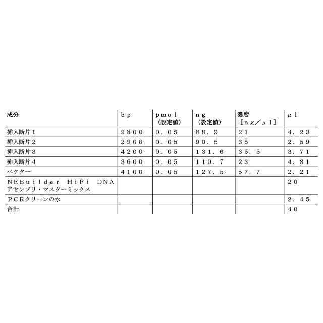 2つのデオキシリボ核酸の組成物を導入する工程;
