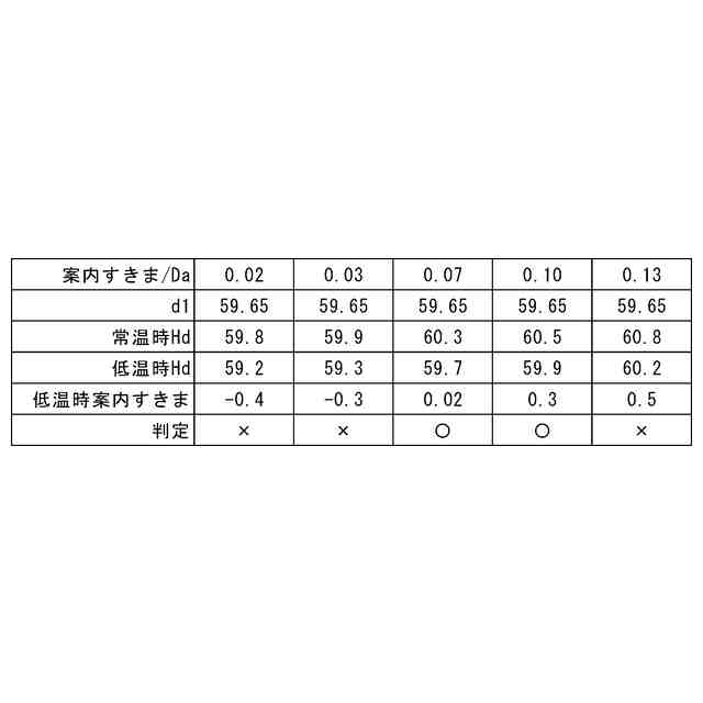さらに、保持器を内輪案内とした場合、案内すきま/玉径が過小の時、低温時に内輪外径と保持器内径が接触し、回転不良となる。また、案内すきま/玉径が過大の時、案内すきまがポケットすきまを上回り、転動体案内となる。このため、案内すきまを玉径の3~10%とすることで、低温時に内輪外径と接触しない最適な案内すきまとなり、内輪外径と保持器内径の間の案内すきまを確保しつつ、確実に内輪案内とし、極低温下で正常に作用することができる。