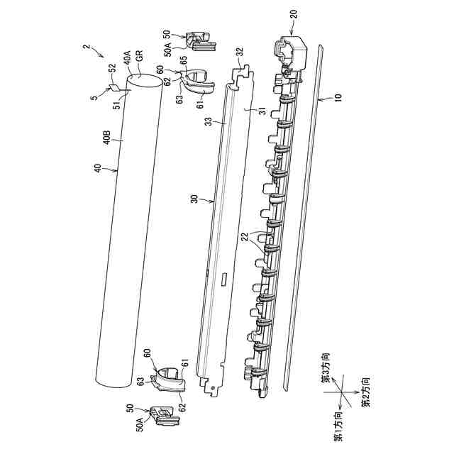 保持フレームは、ベルトに接触する複数の毛のすべてが、基端から先端に向かう方向がベルトの回転方向に沿った方向を向くように、複数の毛を保持している。