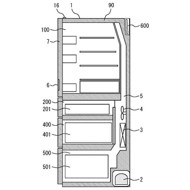 実施の形態1に係る冷蔵庫第2変形例の縦断面図である。
