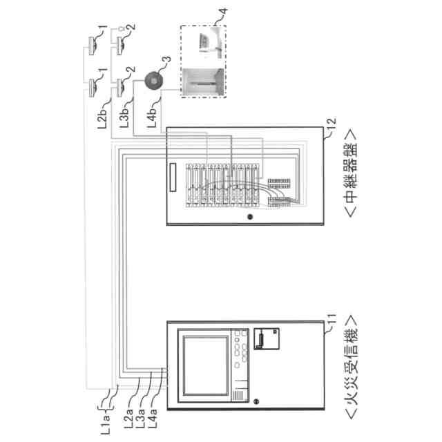 配線L4b:防排煙機器4を中継器盤12内の端子台T2に接続するための信号線。