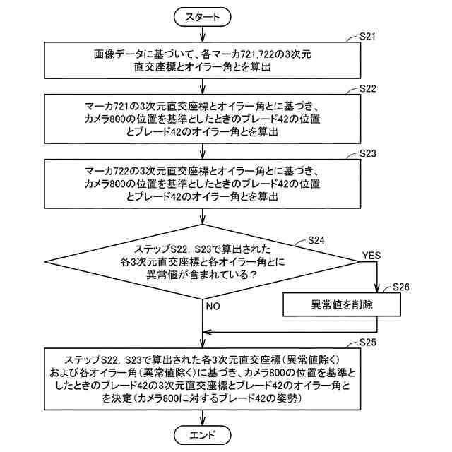 ブレードの刃先の位置を算出するための本変形例でのフロー図である。