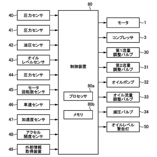 ここで、車両が衝突したときや(このときには大きな衝撃荷重が発生する)、車両において前後方向、横方向、ヨー方向、ロール方向又はピッチ方向に大きな加速度が生じたときなどには、モータの回転軸が傾くことで、回転軸が滑り軸受に接触する可能性がある。このときには、冷媒中のオイルを利用して滑り軸受の負荷能力を速やかに向上させることにより、回転軸と滑り軸受との接触を回避できると良い。