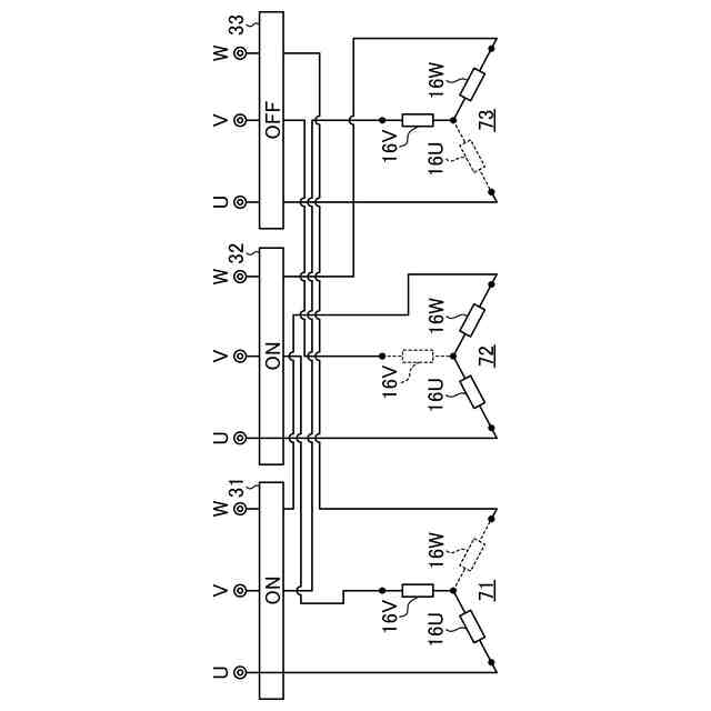 前記三相交流電源と前記第1群エレメントの第3相ヒータエレメントとが接続又は切断されるように、オン又はオフされる第3スイッチと、