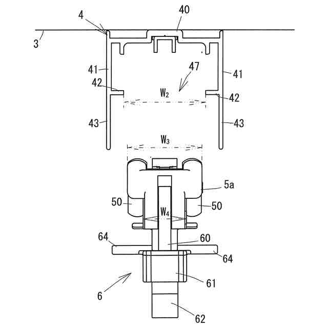 前記吊り車の幅方向の長さは、前記間隙の幅よりも長く、前記拡幅部の幅よりも短い、