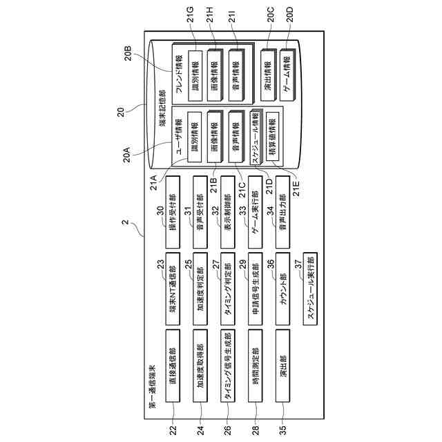 また、本発明の第四態様では、前記加速度判定部の判定結果が肯定判定である場合に、タイミング信号を生成するタイミング信号生成部と、前記直接無線通信部による前記タイミング信号の送受信のタイミングを判定するタイミング判定部と、を更に備え、前記直接無線通信部は、前記タイミング信号を前記他の通信端末に送信するとともに、前記他の通信端末から送信された前記タイミング信号を受信し、前記タイミング判定部は、前記直接無線通信部が前記タイミング信号を送信したタイミングと受信したタイミングとの差が、所定時間以内であるか否かを判定し、前記直接無線通信部は、前記加速度判定部の判定結果及び前記タイミング判定部の判定結果が共に肯定判定である場合に、前記他の端末へ前記識別情報を送信する。